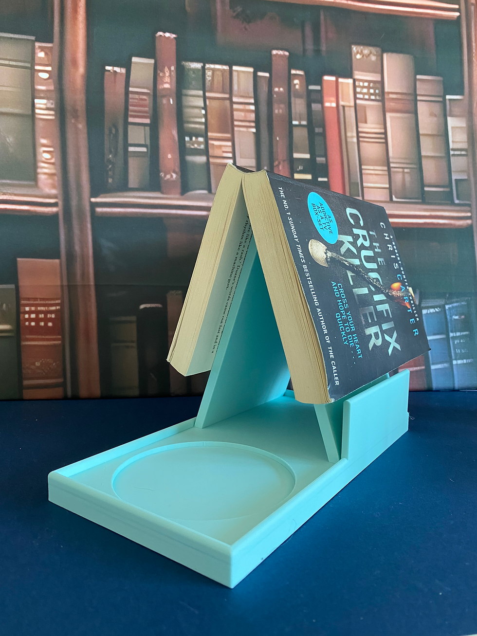 Book, kindle, cup stand